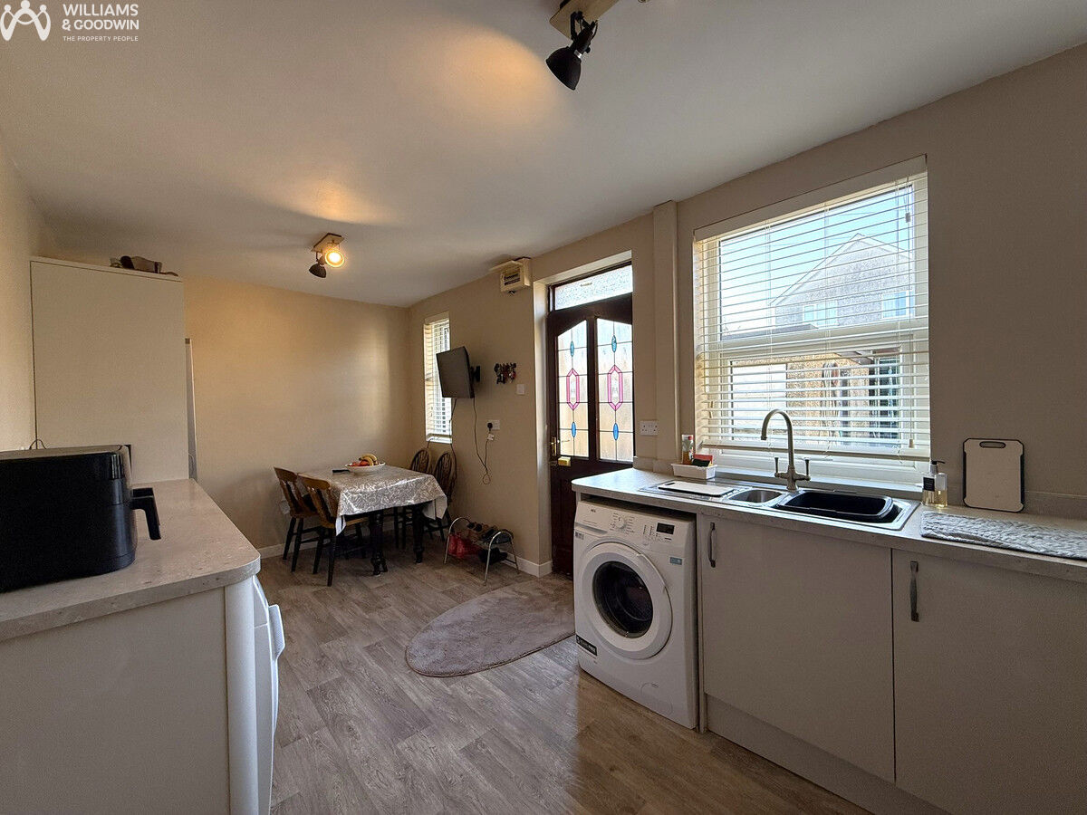 Situated within a pleasant residential setting, this end-terrace home offers comfortable and practical living accommodation, ideal for a range of buyers. The property is approached via a spacious front garden which also provides ample off-road parking, creating a welcoming first impression. Internally, the accommodation comprises an entrance hall leading through to a comfortable lounge, offering a relaxing space for everyday living. To the rear, a contemporary kitchen/dining room provides a bright and sociable hub of the home, well suited to both family life and entertaining. Upstairs, the property offers three bedrooms together with a shower room, providing practical accommodation for growing households or those seeking additional space. Externally, the home continues to impress with a detached garage, kennel and a useful outbuilding with power, currently utilised for storage, offering excellent flexibility for hobbies, workspace, or further practical use.