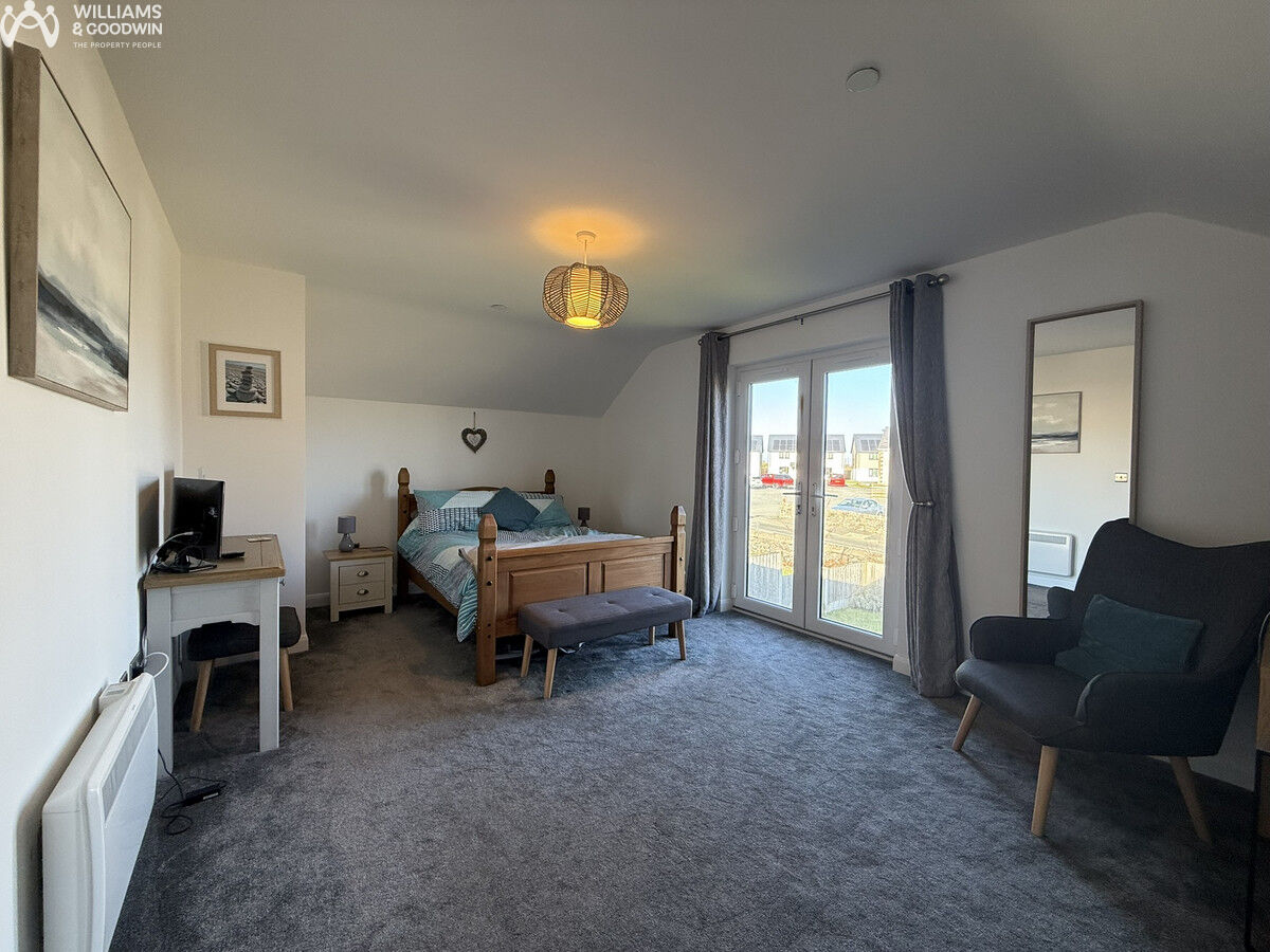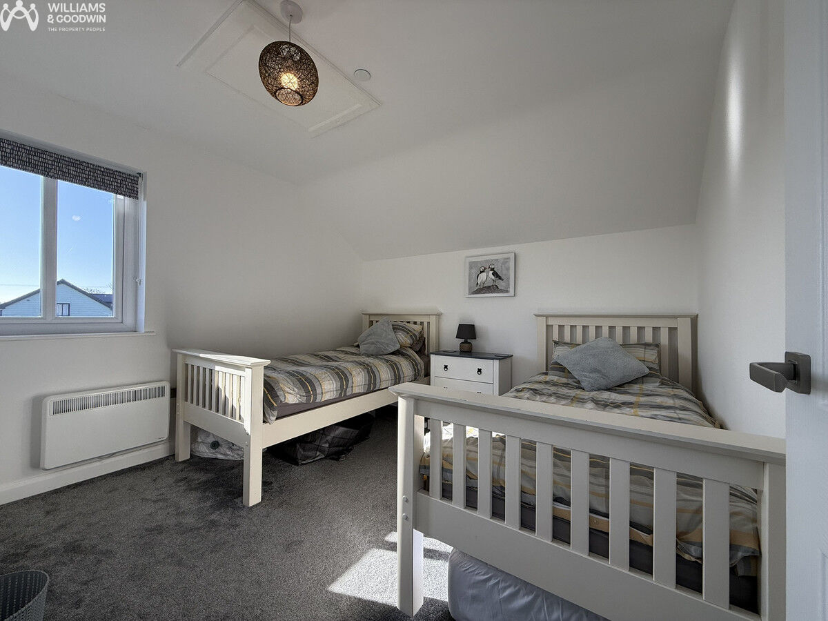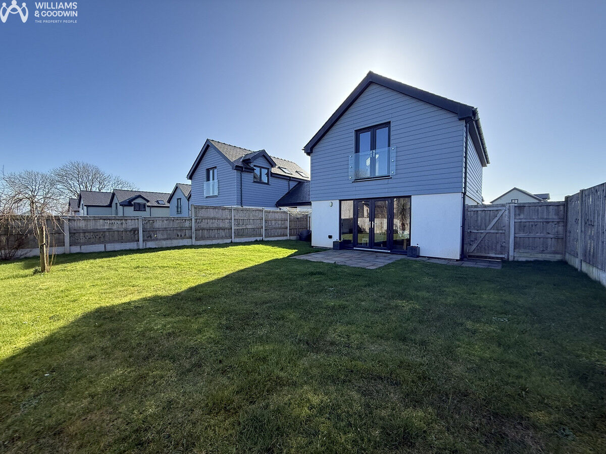 Modern three-bedroom link-detached home built in 2020/21, for use as a second home / holiday let. Features open-plan living, ground-floor bedroom with en-suite, solar panels and a landscaped garden. Located in Brynteg, with Benllech’s amenities and sandy beach a short drive away