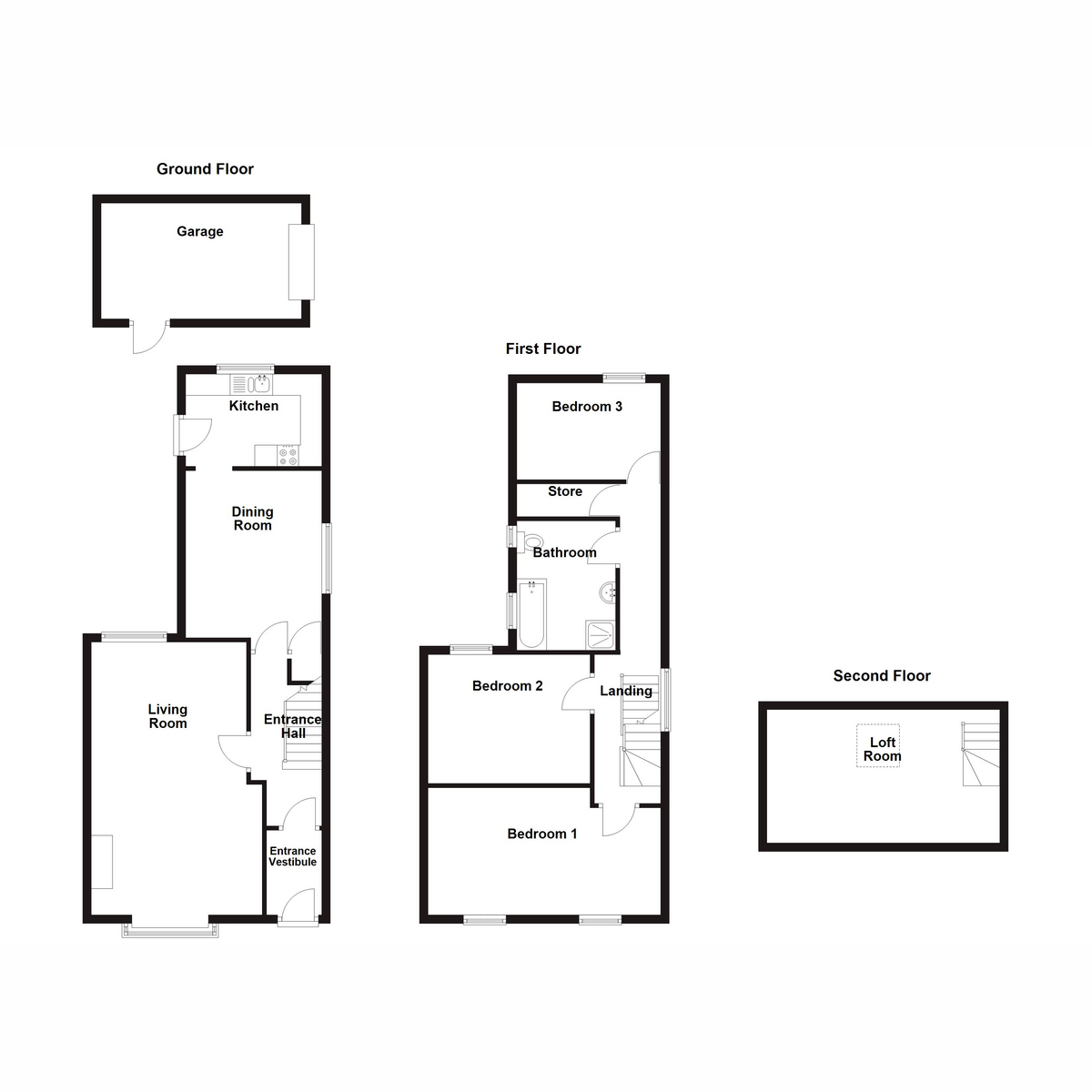 Upstairs, you will find three bright and well-proportioned bedrooms, each offering a calm setting for rest, work, or personal hobbies. The bathroom has been thoughtfully designed to meet the needs of your daily routine, offering comfort and style. At the top of the house, the loft space offers flexibility for different uses - whether you envision it as a home office, playroom, or additional storage space.