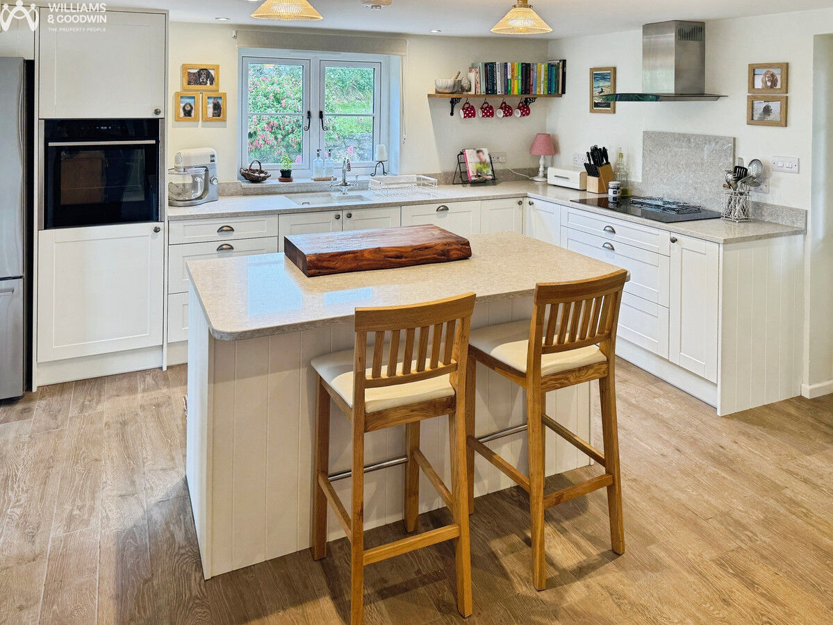 Internally, the charming and comfortable internal layout is welcomed through an entrance porch which opens onto the ‘heart of the home’ - a stylish open plan kitchen/diner which boasts a wealth of space, fitted with stunning quartz worktops, show stopping isle unit and a range of Neff appliances. Adjacent to the kitchen, you’ll find a handy rear porch which opens onto a convenient shower room/W.C. From the kitchen/diner, there is access to an inner-hallway which flows smoothly into a snug room or potential bedroom and the main lounge area which was previously used as a barn and converted to present itself as comfortable living space. Both living spaces feature eye-catching multi-fuel burners—perfect for those cosy evenings! On the second floor, you'll discover three generously sized bedrooms along with the main bathroom. The property is equipped with LPG central heating and woodgrain effect FLUSH FIT uPVC double glazing for your comfort all year-round.