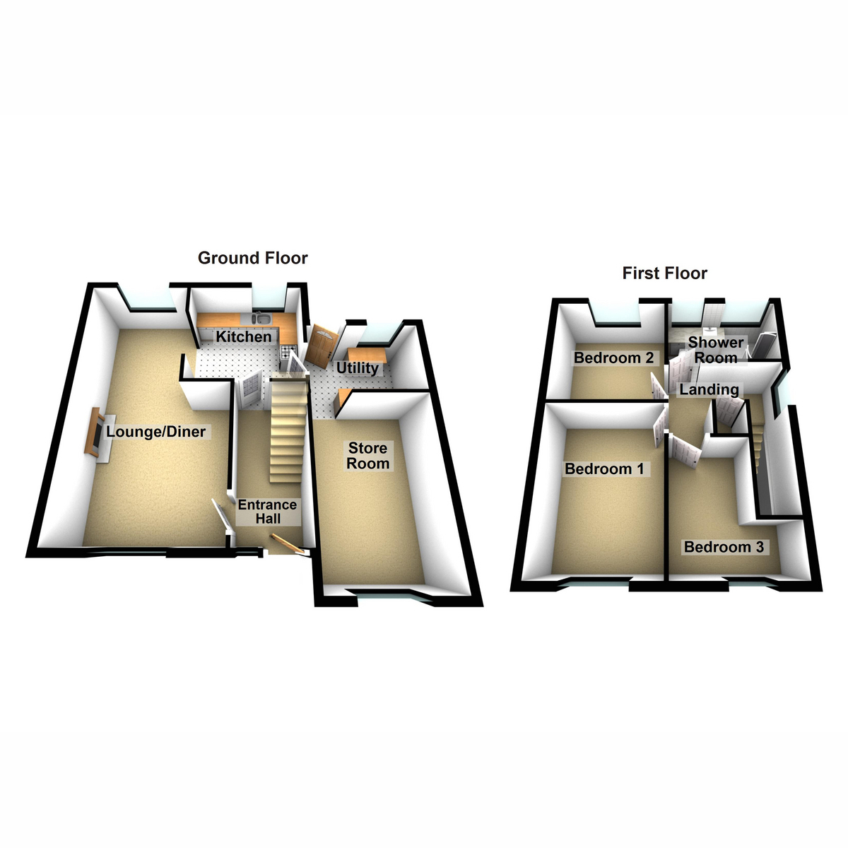 A comfortable family home offering a practical layout to include a sizeable lounge/diner which opens onto the kitchen, utility room and store room, providing plenty of living space. On the upper floor, you will find three bedrooms and a most attractive fitted shower room. The property includes oil-fired central heating and double glazing, ensuring a warm and energy-efficient environment throughout the year. Off-road parking is available, with a driveway that accommodates up to two cars.