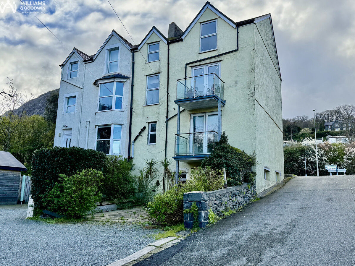 Property is located on the edge of the village close to the A55 making it ideal for commuting West to Bangor or East to Conwy, Colwyn Bay and beyond. With the benefit of Gas fired central heating and UPVC double Glazing and currently laid out to provide spacious open plan living. The layout may lend itself to dividing the large lounge on the first floor into living and possible additional bedroom and the principal rooms to the rear have double doors leading out to balconies to take advantage of the views to the rear towards the sea.