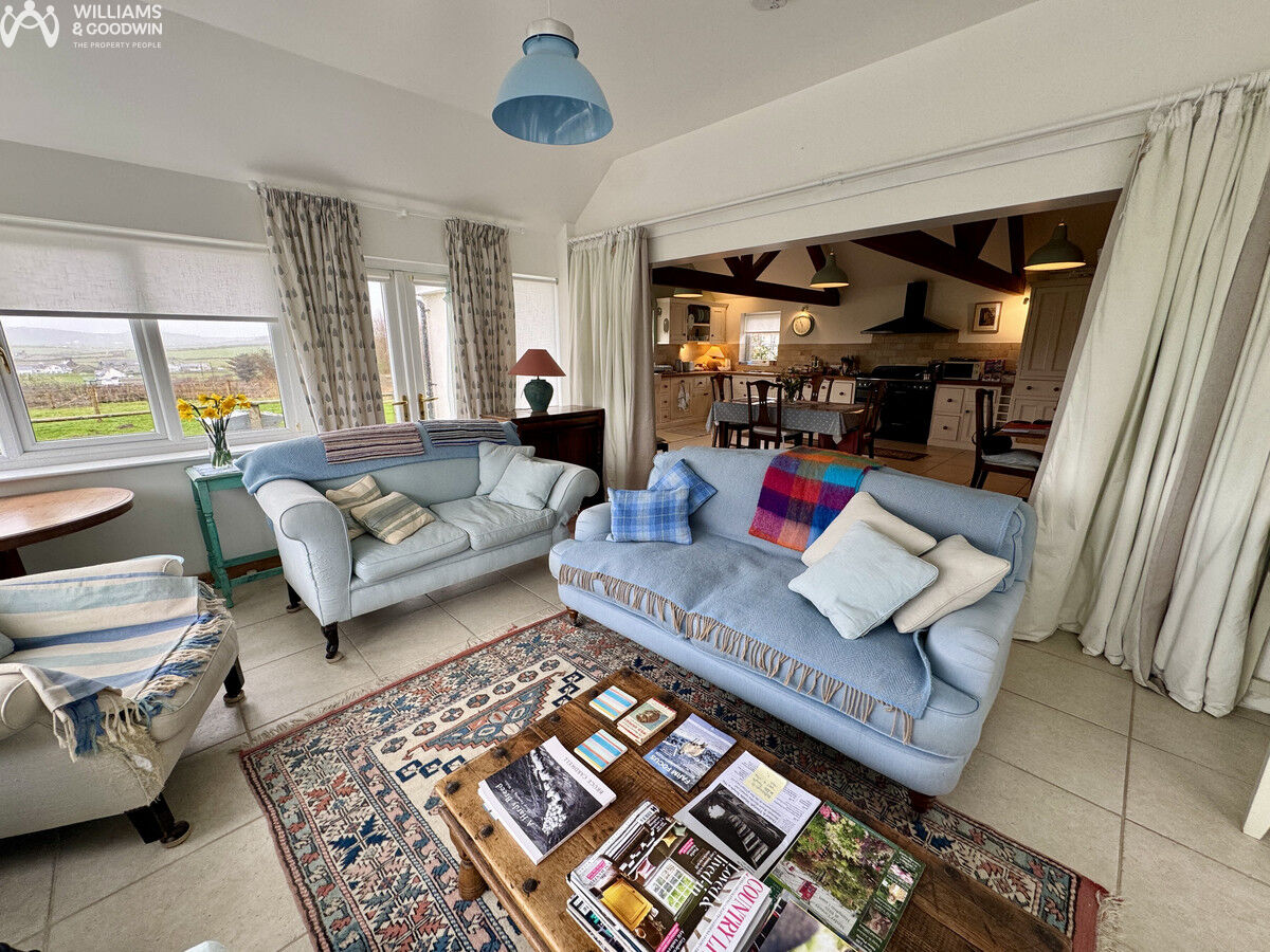 Outside, you’ll be thrilled with the ample parking available on the gated drive! The garden surrounds the property, offering a delightful variety of spaces to explore, including a workshop, a patio seating area, and multiple paddocks currently home to some adorable sheep. And it gets even better—this property has recently acquired an additional parcel of land that connects the original plot to a field behind, revealing spectacular views of the coastline! What a fantastic opportunity!