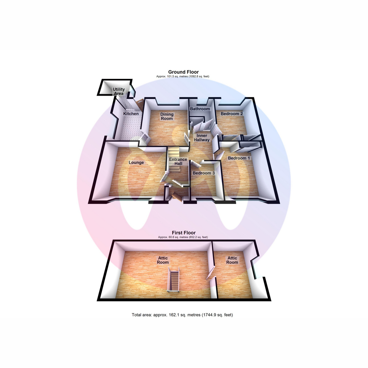 The property features a comfortable lounge, dining room, and kitchen, providing a practical layout for everyday living. With three ground floor bedrooms and a bathroom, it caters well to families or those looking for single-level living.