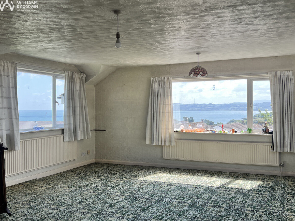 The property which was converted from a former coach house by the family of the current vendor in the 1970’s provides extensive accommodation to two floors with far reaching views over the beach to Benllech bay and beyond to the Llanddona headland. Being situated at the end of a single track lane in the centre of Benllech this detached residence offers substantial accommodation which although likely to benefit from a degree of upgrading provides an opportunity to create an individual home in a unique setting. The property which has the benefit of double glazing and oil fired central heating is currently laid out to provide a lounge and kitchen to the ground floor with a wing running off to the rear providing 2 bedrooms and a shower room, whilst to the first floor is a spacious and bright open plan sitting room area taking in the lovely views to Benllech Bay, off which sits a large landing area suitable as a work from home office space with a bathroom off and again a rear wing leading to a further two bedrooms.