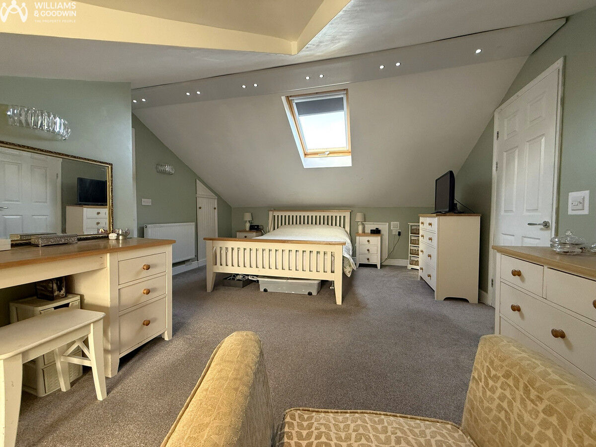 Set within a sought-after residential setting, this impressive four-bedroom detached home offers a versatile and thoughtfully designed layout ideal for modern living. The heart of the home is undoubtedly the open-plan kitchen and dining area, where a skylight bathes the space in natural light and bifolding doors seamlessly extend the living area into the landscaped garden. The contemporary kitchen boasts ample cabinet space, perfect for culinary enthusiasts. Adjacent to this is a spacious lounge, complete with a fireplace featuring a back boiler, creating a cosy atmosphere for those cooler evenings. The ground floor also accommodates two well-appointed bedrooms, a modern shower room, and a versatile utility space that doubles as a study. The integral garage and conservatory add further practicality and charm to this delightful property. Upstairs, the master bedroom is a true retreat, with an en-suite bathroom, a walk-in wardrobe, and access to eaves storage, all while offering sea views.