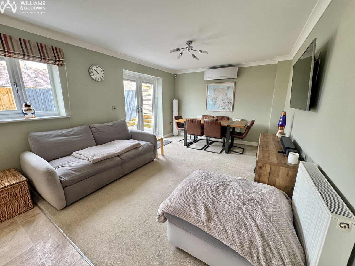 As you continue your tour, you'll be struck by the beautiful double doors that open up from the living room into the large kitchen/diner. This expansive communal area is perfect for entertaining and will surely wow your guests during gatherings and celebrations. Adjacent to the kitchen, you’ll find a snug seating area that could also serve as an extended di...