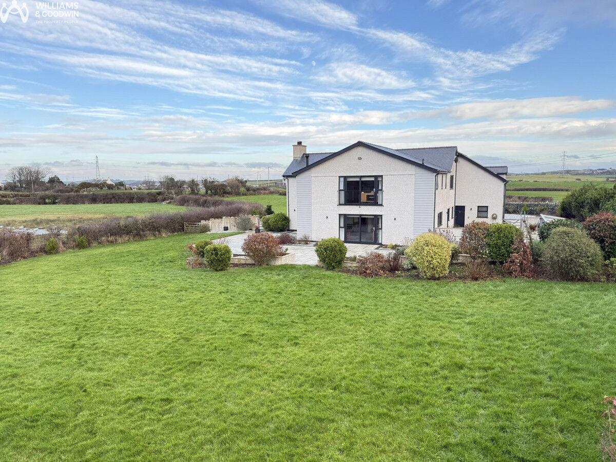 Architecturally designed to perfection, this stunning home in Mynydd Mechell, Amlwch, Anglesey, offers an exquisite blend of generous and versatile spaces with all the modern conveniences one could desire. The property boasts an impressive two-bedroom annexe located above a spacious double garage, providing ample room for guests or extended family. Inside, the home features a striking galleried landing with an apex window that floods the space with natural light, creating an inviting and airy atmosphere. The open-plan living area at the rear of the property is perfect for modern family life, while the practical utility space and abundant storage solutions ensure a clutter-free environment. T...