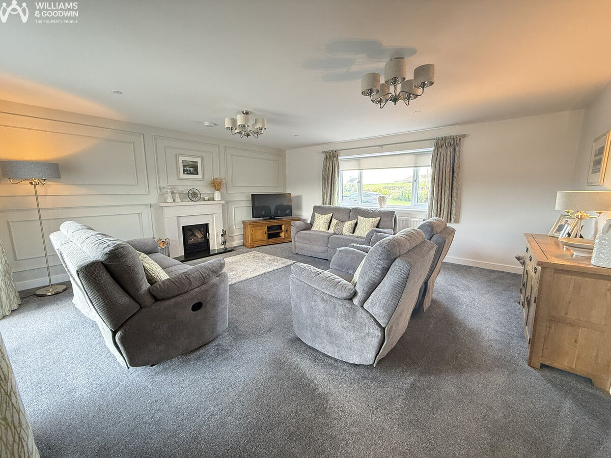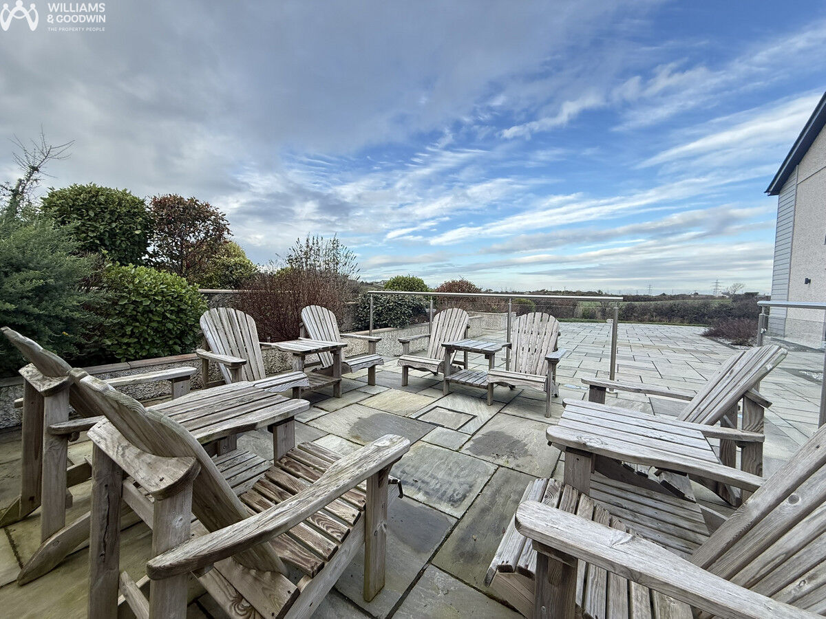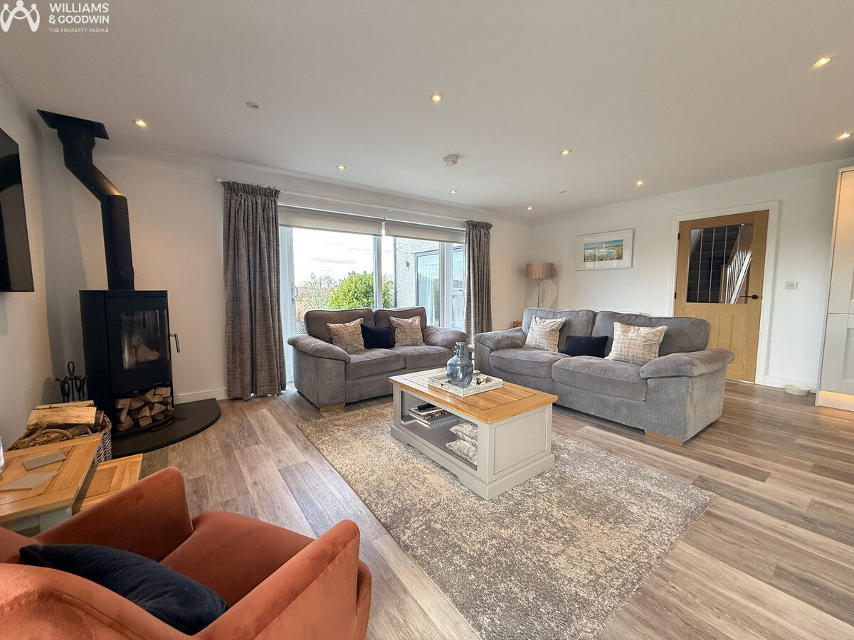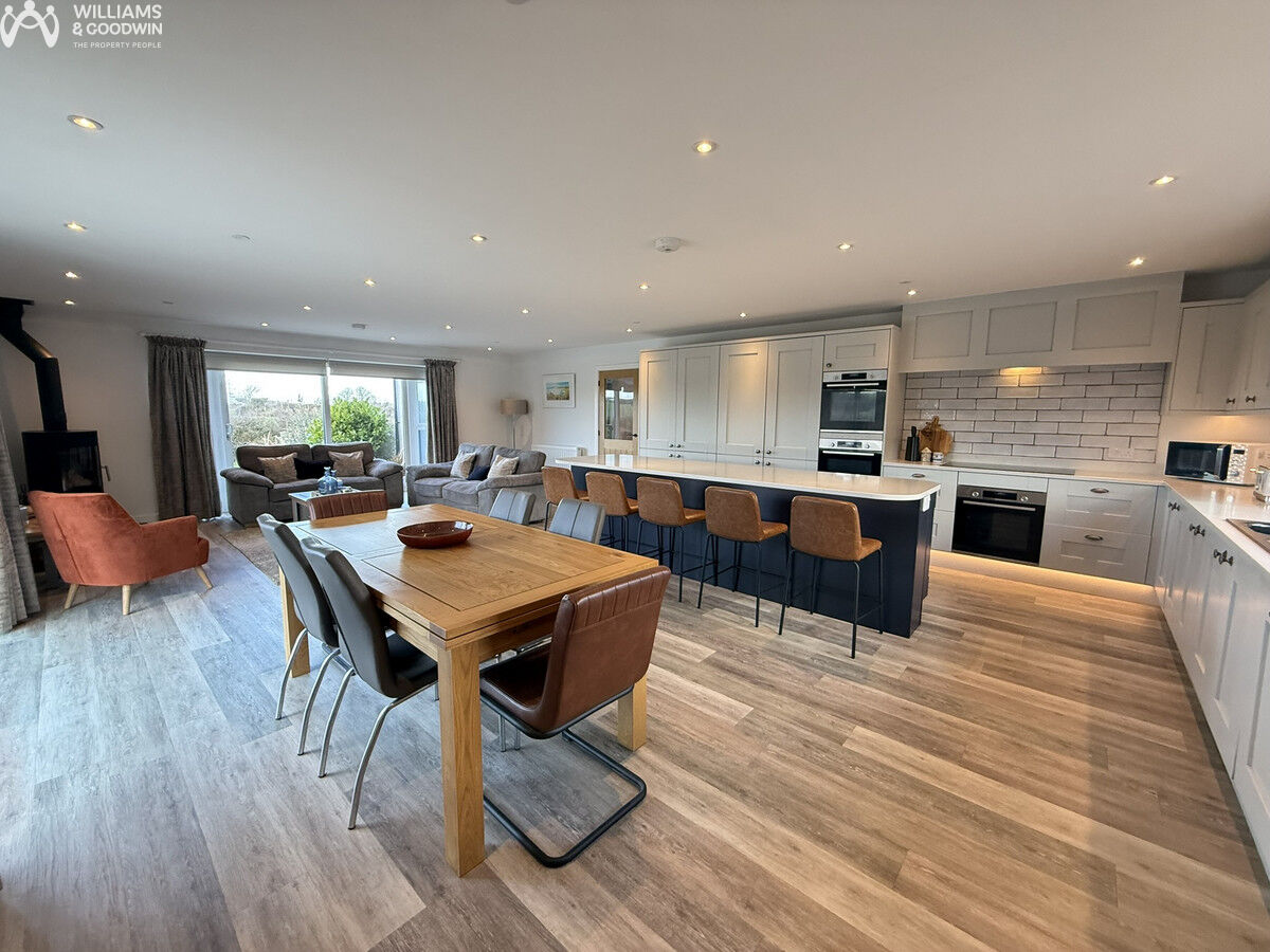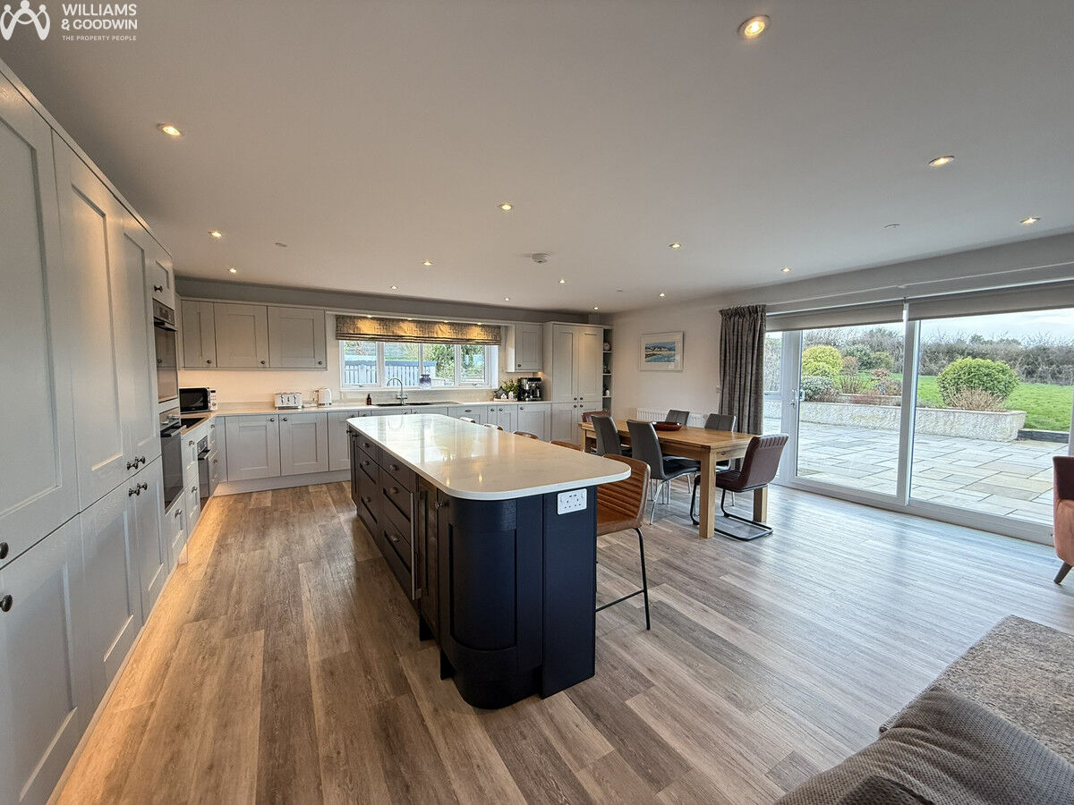 Architecturally designed to perfection, this stunning home in Mynydd Mechell, Amlwch, Anglesey, offers an exquisite blend of generous and versatile spaces with all the modern conveniences one could desire. The property boasts an impressive two-bedroom annexe located above a spacious double garage, providing ample room for guests or extended family. Inside, the home features a striking galleried landing with an apex window that floods the space with natural light, creating an inviting and airy atmosphere. The open-plan living area at the rear of the property is perfect for modern family life, while the practical utility space and abundant storage solutions ensure a clutter-free environment. The reception spaces are enhanced by solid fuel burners, adding warmth and character, making them ideal for cosy evenings. Outside, the property offers plentiful parking and expansive open gardens with patios, creating a superb space for entertaining family and friends.