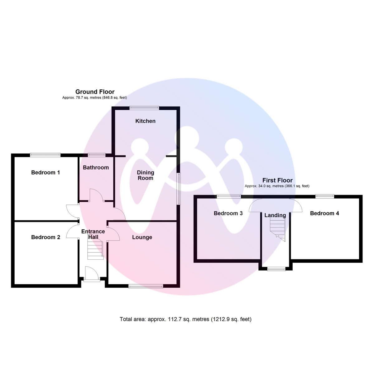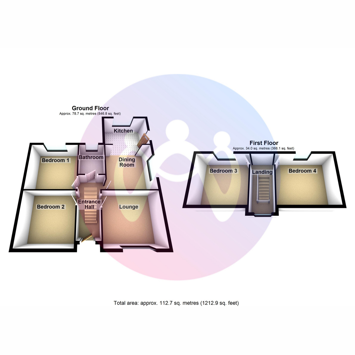 The property features a lounge and an open plan kitchen/dining area, wo ground floor bedrooms provide convenience, while two additional bedrooms on the first floor offer flexibility for guests or addable spaces such as work from home offices.